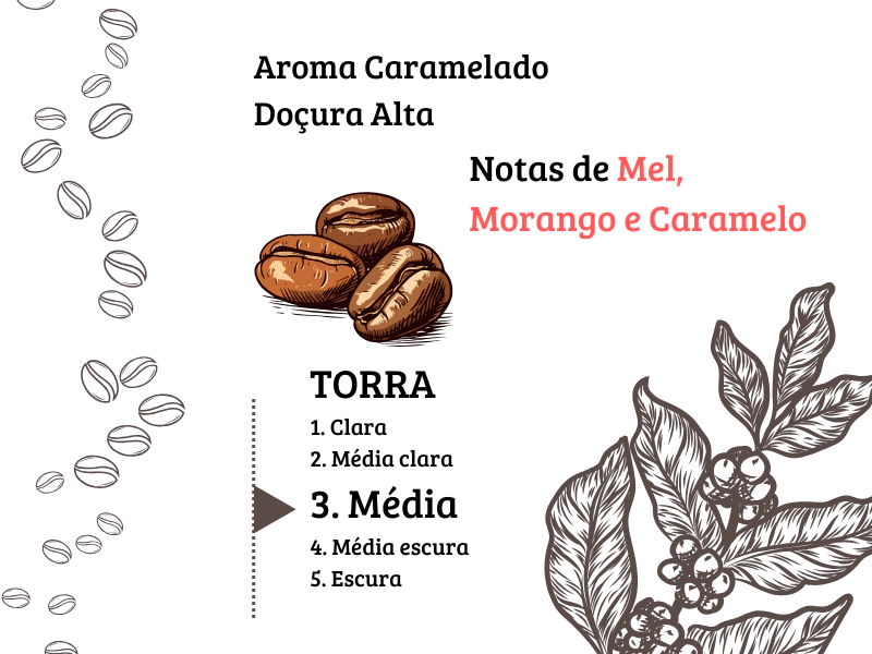 Esse café é muito doce e delicado, com notas de Jasmim e Cana de açúcar.